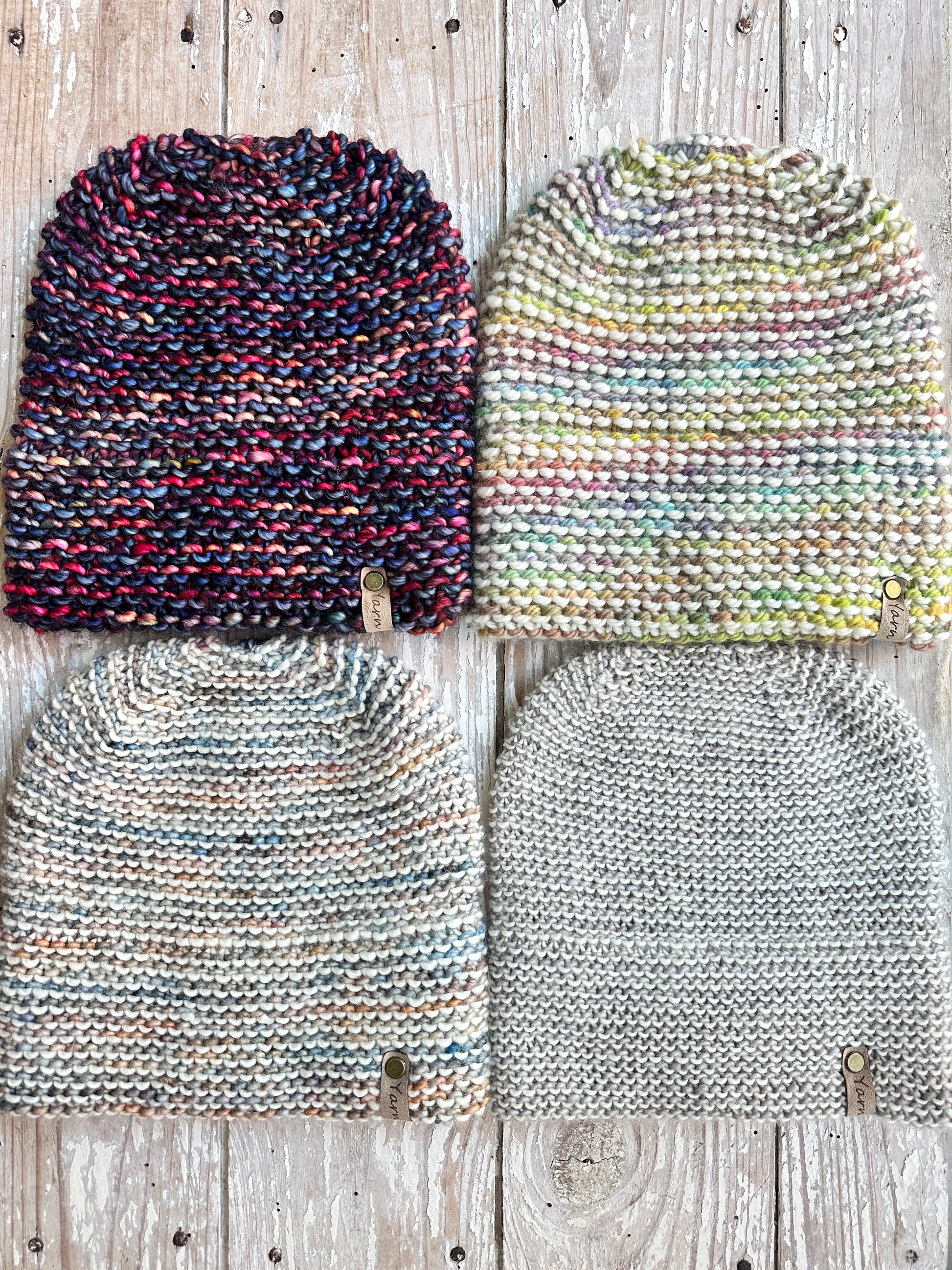 The pattern is written for 4 yarn weights and includes written instructions along with photo and video tutorials for the double brim portion.