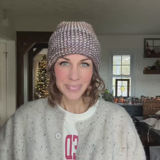 This hat is constructed with a double brim for an extra cozy feeling and warmth! it is a classic knit with a little bit of flair!