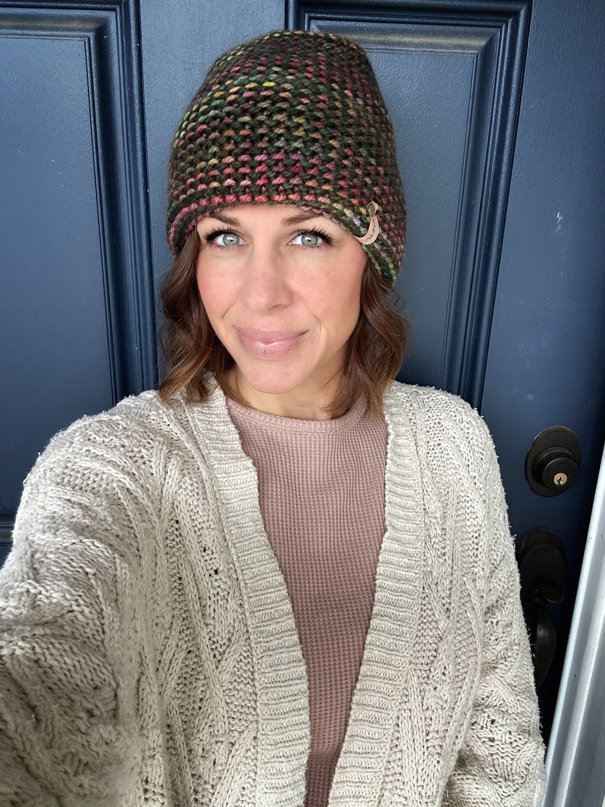 This knitted is made of olive green and rainbow tones with the olive color located on the inside brim as well. It is a classic knit design that will become a staple in your fall and winter wardrobe! This hat has a double brim that provides extra warmth and comfort! This hat is made of Malabrigo chunky 100% Merino wool. Known for its softness and warmth, It is a breathable, odor resistant wool that absorbs moisture keeping you warm and dry in those winter months! Merino Wool is naturally long, which makes for a strong fiber. Because of the high quality of this wool, this hat will wear well, maintain its shape, and remain looking great! The pictures of this hat are taken in natural light and are not altered. Color is depicted in pictures to the best of my ability. It may vary slightly in person from your computer screen.