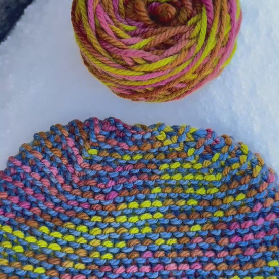 This knitted is made of cream and pink, lime green, and blue tones with the cream color located on the inside brim as well. It is a classic knit design that will become a staple in your fall and winter wardrobe! This hat has a double brim that provides extra warmth and comfort! This hat is made of Malabrigo chunky 100% Merino wool. Known for its softness and warmth, It is a breathable, odor resistant wool that absorbs moisture keeping you warm and dry in those winter months! Merino Wool is naturally long, which makes for a strong fiber. Because of the high quality of this wool, this hat will wear well, maintain its shape, and remain looking great! The pictures of this hat are taken in natural light and are not altered. Color is depicted in pictures to the best of my ability. It may vary slightly in person from your computer screen.