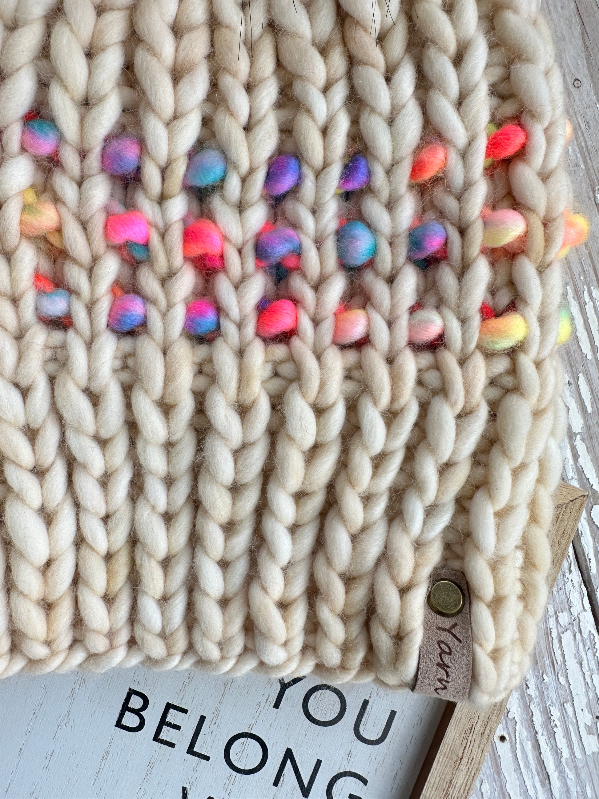 This knitted hat had a beautiful two toned design. It has a nice fitted fit.This hat is made of Malabrigo rasta and Fainting goat fibers 100% Merino wool. Known for its softness and warmth, It is a breathable, odor resistant wool that absorbs moisture keeping you warm and dry in those winter months! Merino Wool is naturally long, which makes for a strong fiber. Because of the high quality of this wool, this hat will wear well, maintain its shape, and remain looking great! It is topped with a tan faux fur pom that is secured to the hat with a toggle for easy removal. The pictures of this hat are taken in natural light and are not altered. Color is depicted in pictures to the best of my ability. It may vary slightly in person from your computer screen.